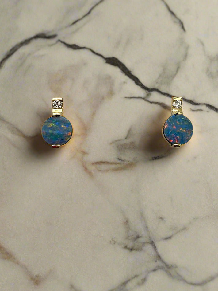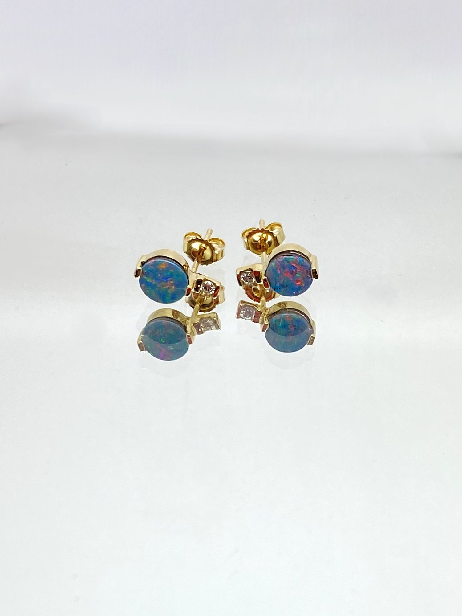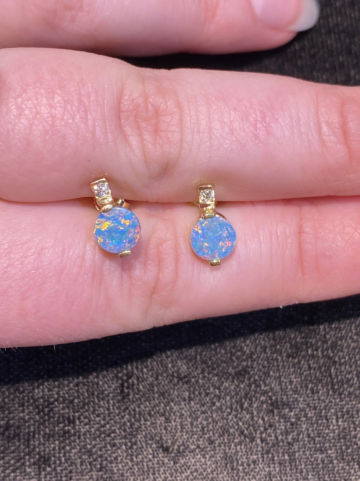 Enjoy the play of colors in these 6mm round Boulder Opal studs in different kinds of lighting!