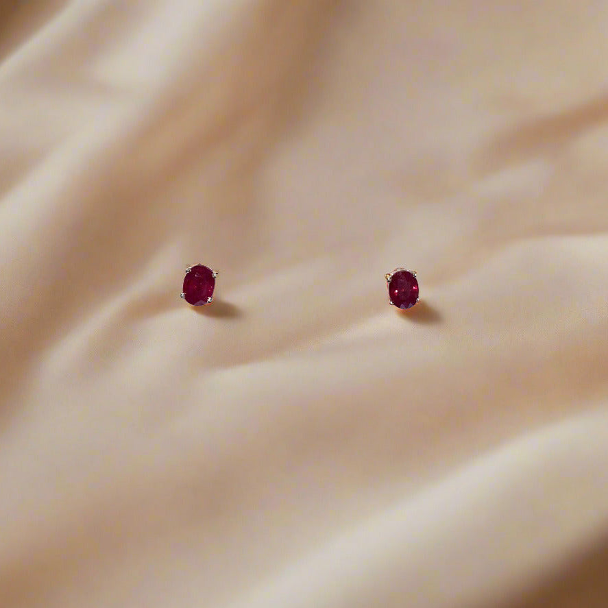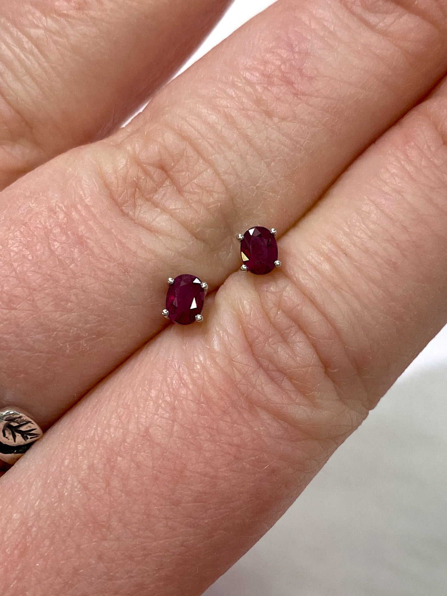 In bright 14 karat white-gold, these precious natural Ruby stud earrings total 0.62 carats and have such a fire in them in the sunlight that we are obsessed!