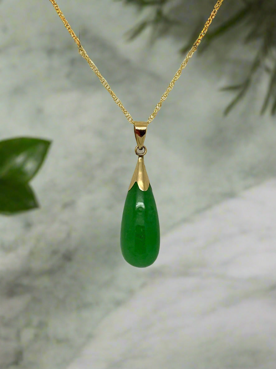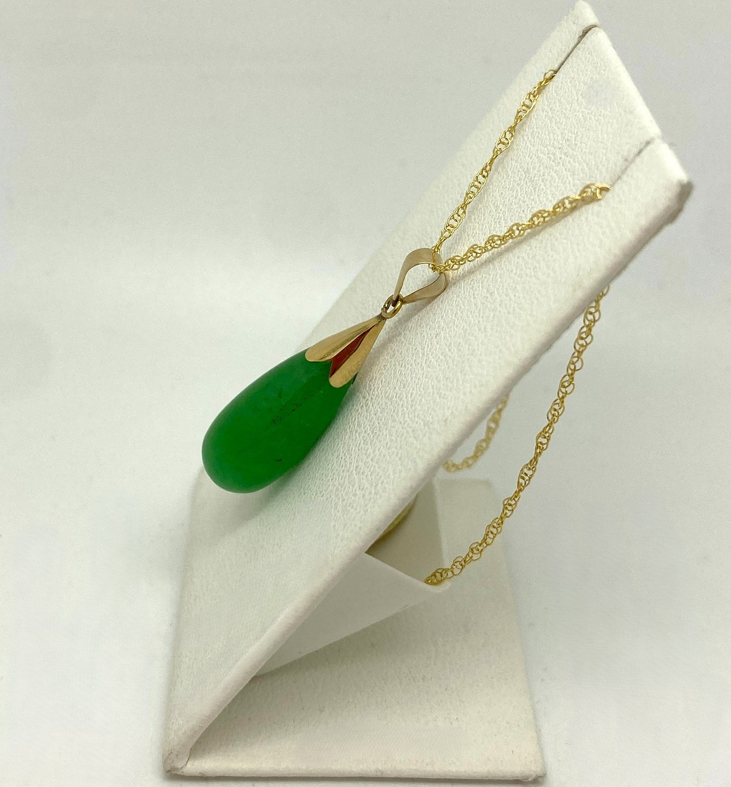 14kt Pear-shaped Jade Pendant on 18" Chain
