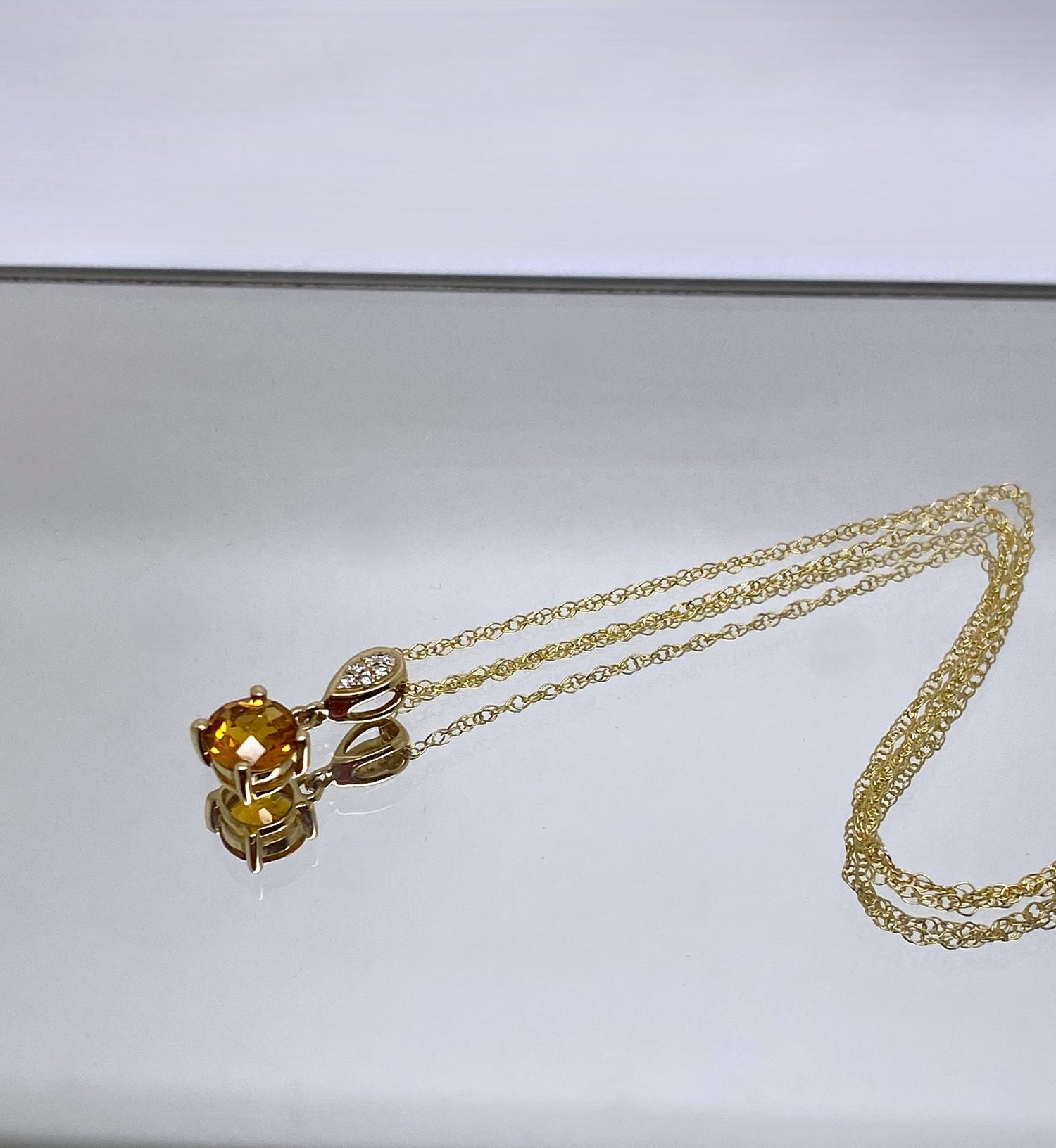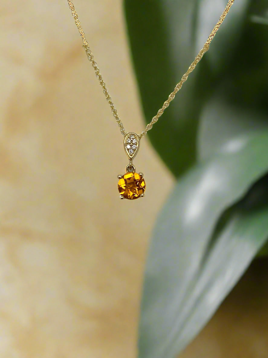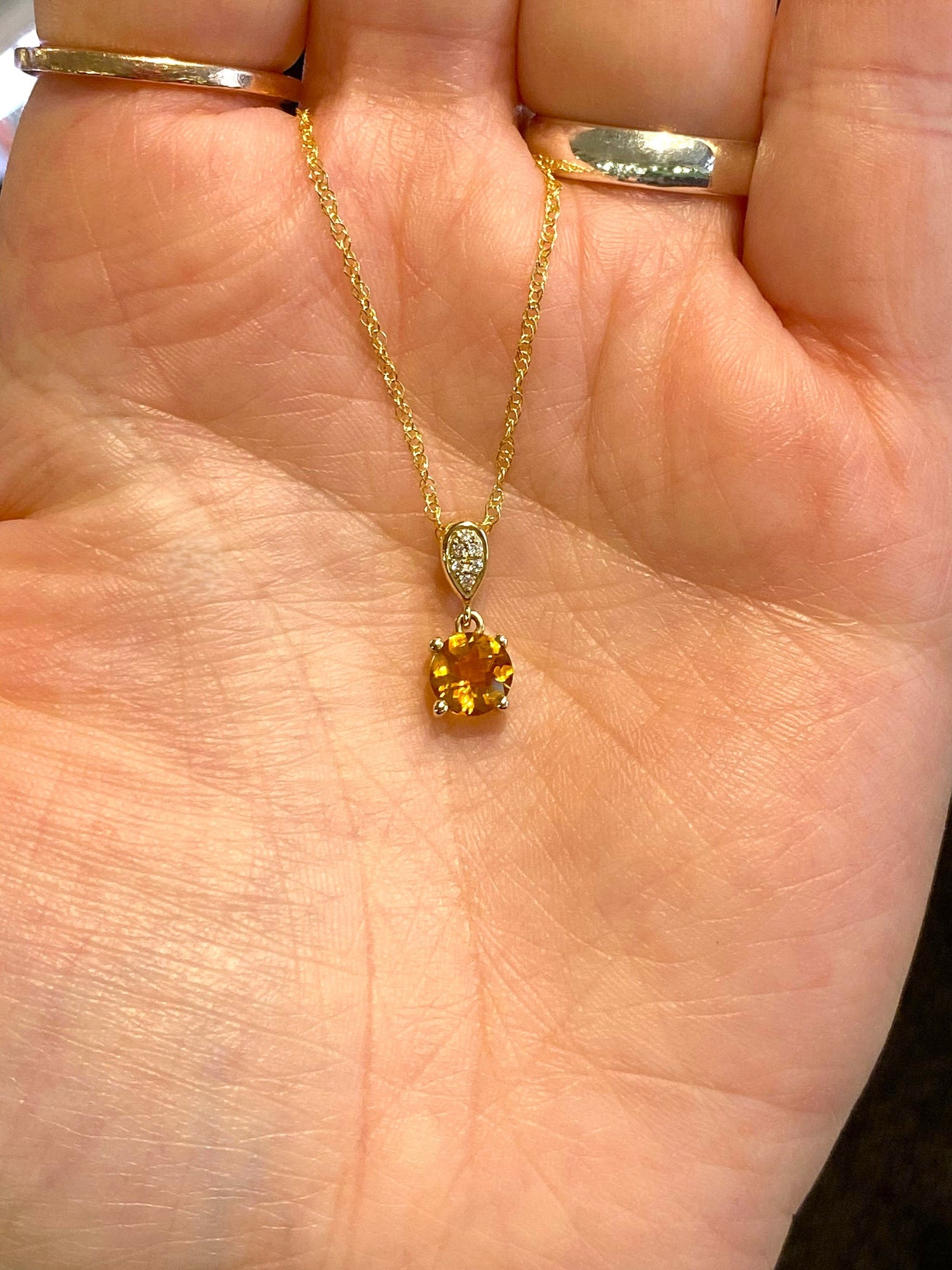 Luxurious Citrine and natural Diamonds glitter in this 14 karat yellow-gold pendant, look no further for gold on gold!