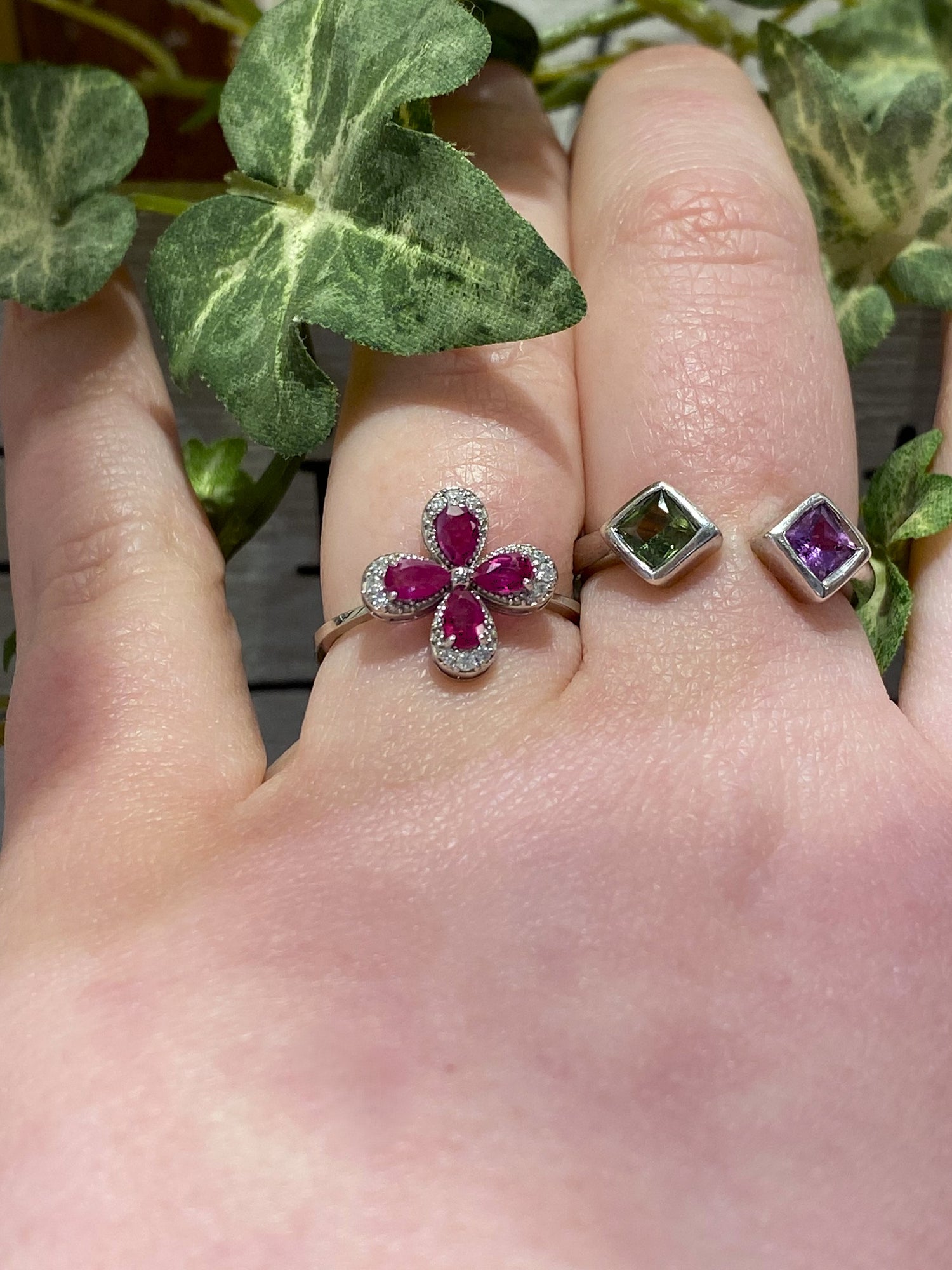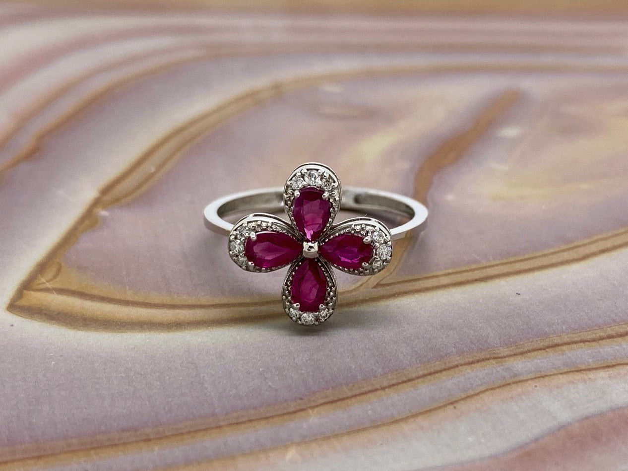 18kt Clover-style Ruby & Diamond Ring