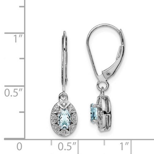 Sterling Silver Rhodium-plated Diam. and Aquamarine Earrings