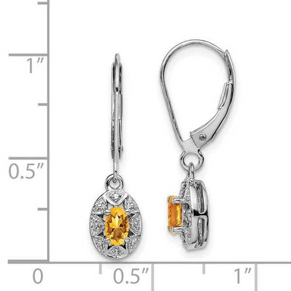 Sterling Silver Rhodium-plated Diam. and Citrine Earrings