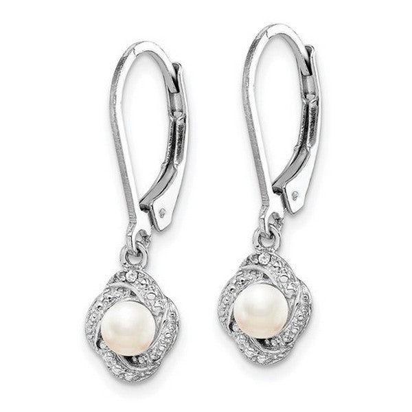 Sterling Silver Rhodium-plated Diam. and FW Cultured Pearl Earrings
