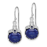 Sterling Silver Rhodium-plated Lapis Lazuli with Leaf Accent Dangle Earrings