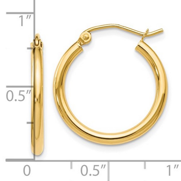 14K Yellow Gold 2x20mm Hoop Earrings
