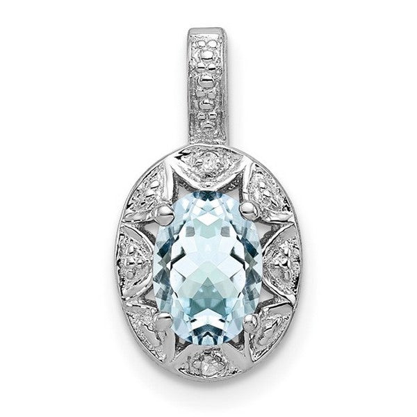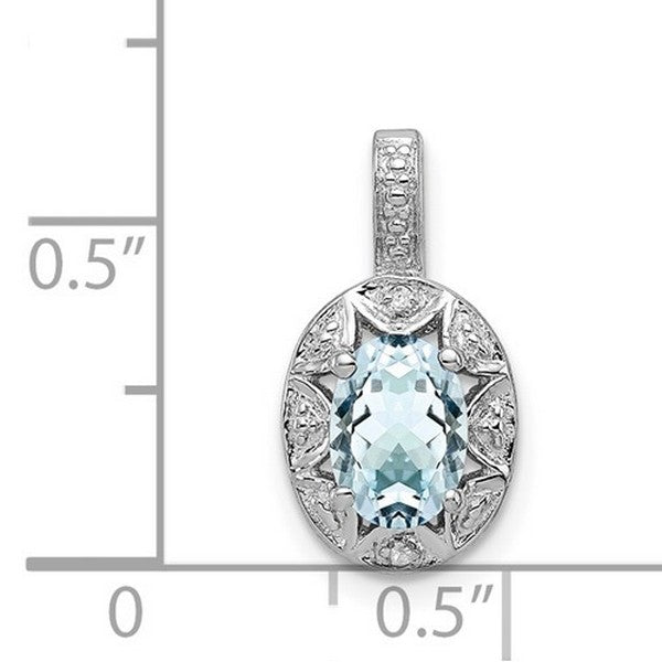 Sterling Silver Rhodium-plated Diam. and Aquamarine Pendant w/ 18 chain + extender