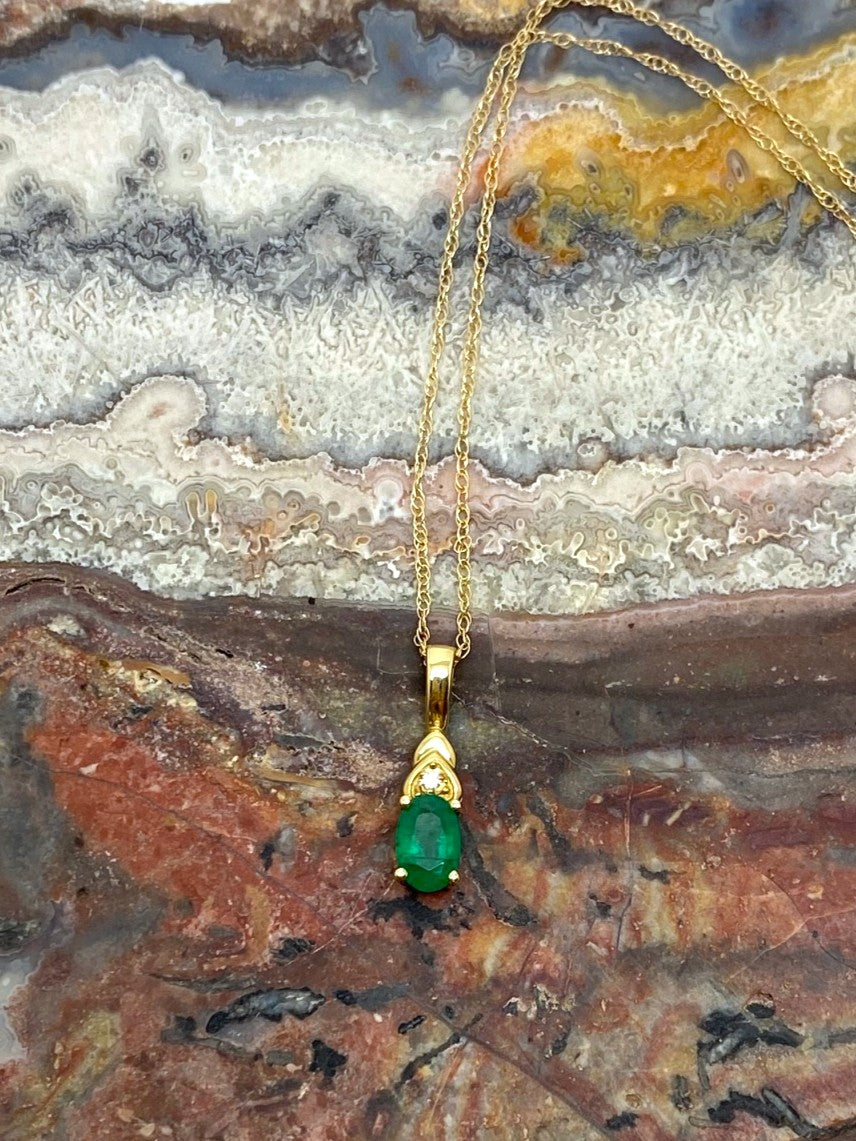 14k Emerald and Diamond Pendant w/ 18 chain