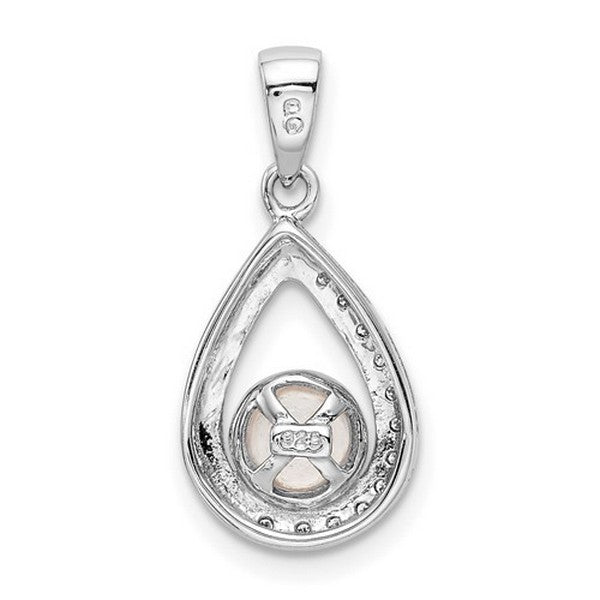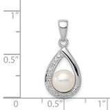 Sterling Silver Rhodium-plated 6mm Freshwater Cultured Pearl and Diamond Teardrop Pendant w/ 18 chain + extender