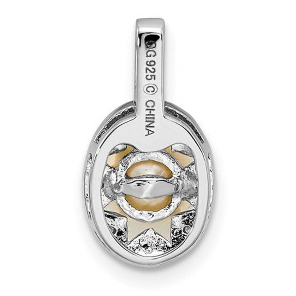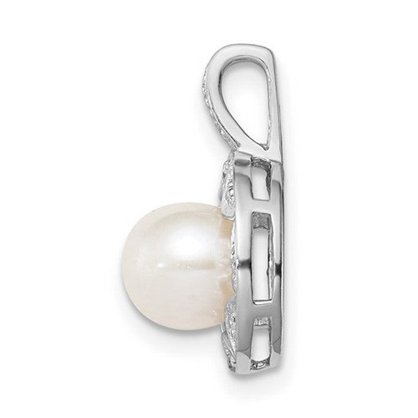 Sterling Silver Rhodium-plated Diam. and FW Cultured Pearl Pendant w/ 18 chain + extender