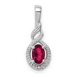 Sterling Silver Rhodium-plated Created Ruby and Diam. Pendant w/ 18 chain + extender