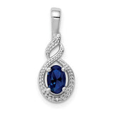 Sterling Silver Rhodium-plated Created Sapphire and Diam. Pendant w/ 18 chain + extender