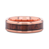 ALDER Rose Gold Plated Rose Wood Inlaid Tungsten Men's Wedding Band With Beveled Polished Edges - 8mm