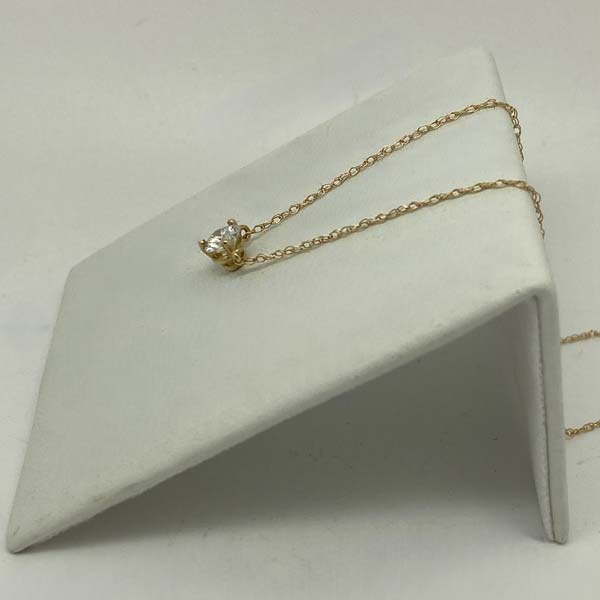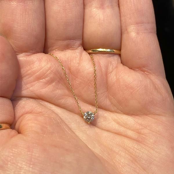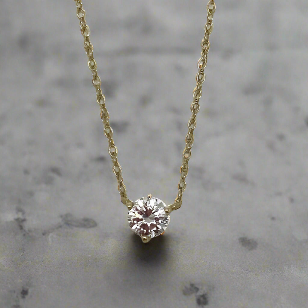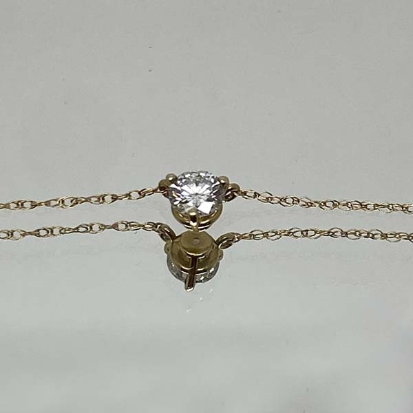 Round natural Diamond, dainty station necklace. The Diamond is set in a three prong centerpiece and is a total of 16" chain.- .30ct SI2/HI