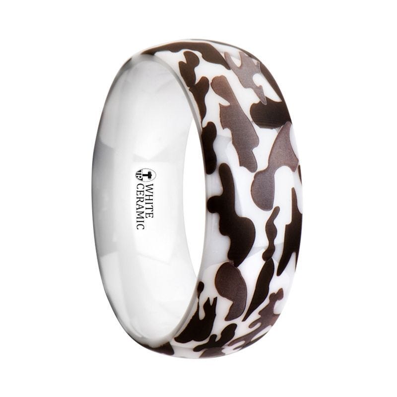 STRYKER Camo White Ceramic Wedding Band Domed - 8mm