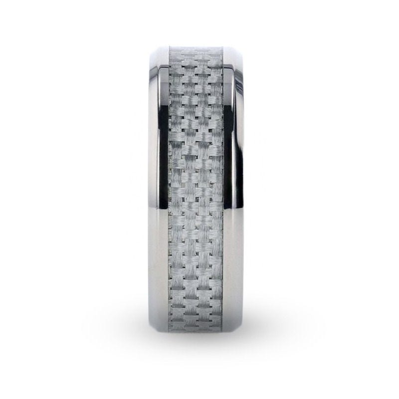 TANTALUS Beveled Edge Titanium Ring with White Carbon Fiber