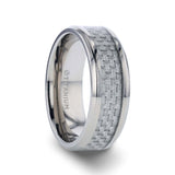 TANTALUS Beveled Edge Titanium Ring with White Carbon Fiber Inlay - 8mm