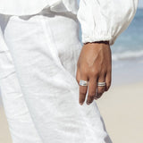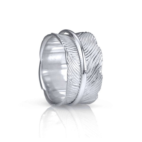 Sterling Silver Meditation Ring with a beautiful organic leaf pattern base with brushed Silver edging featuring a Sterling Silver spinning band. Includes complimentary Meditation Rings Tin & Travel Pouch