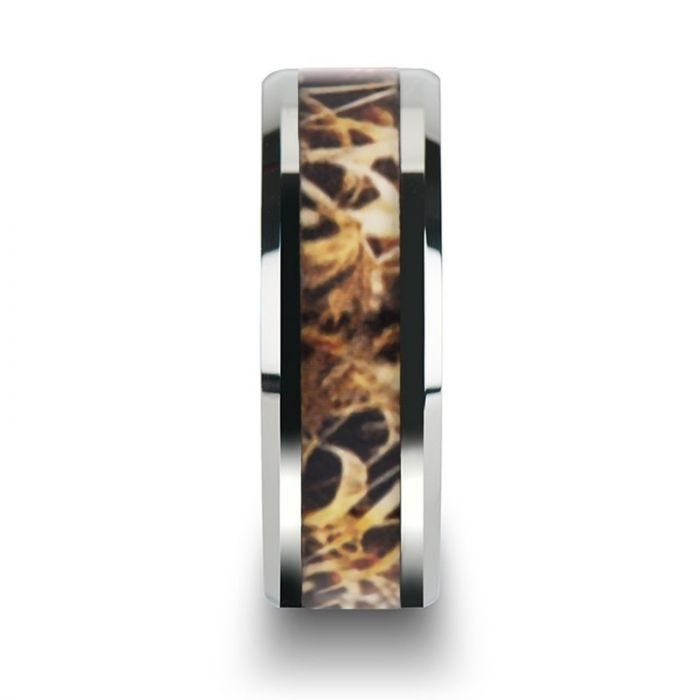 TERRA Tungsten Carbide Wedding Band with Leaves Grassland Camo Inlay Ring - 8mm