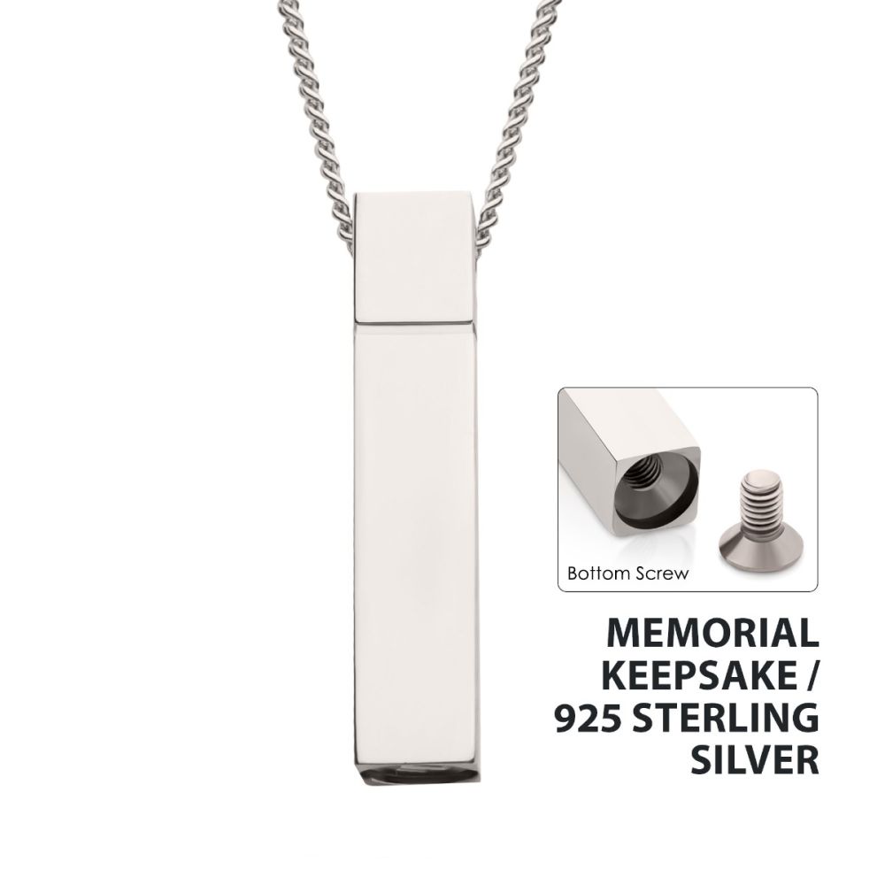 925 Sterling Silver with Bottom Screw The Keepsake Urn Engravable Bar Pendant with 24 inch Curb Chain.