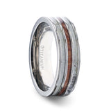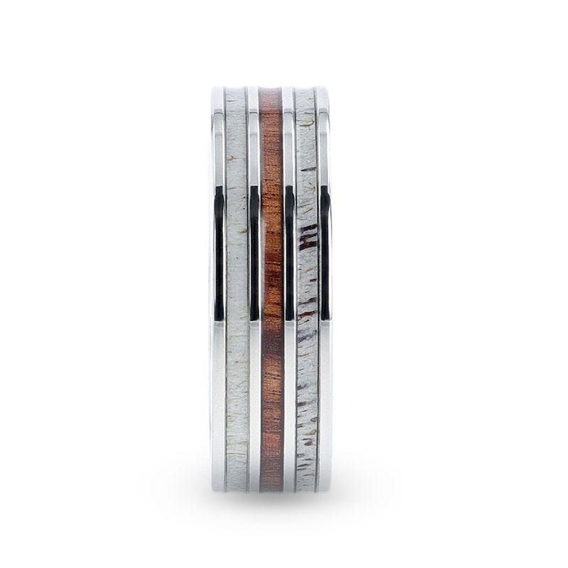 TRIPOLI Wood Inlaid Titanium Flat Polished Finish Men's Wedding Ring With White Double Deer Antler Edges - 8mm