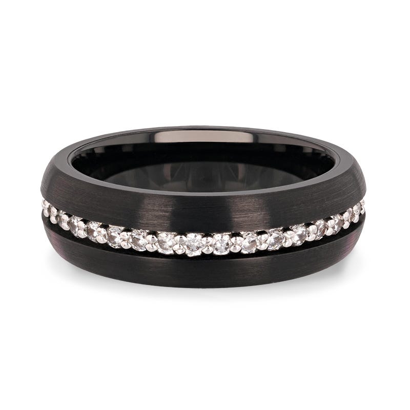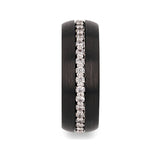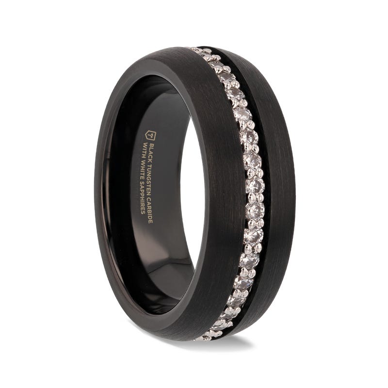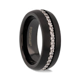 TSAR Black Tungsten Carbide Ring Domed Brushed Finish with White Sapphires - 8mm