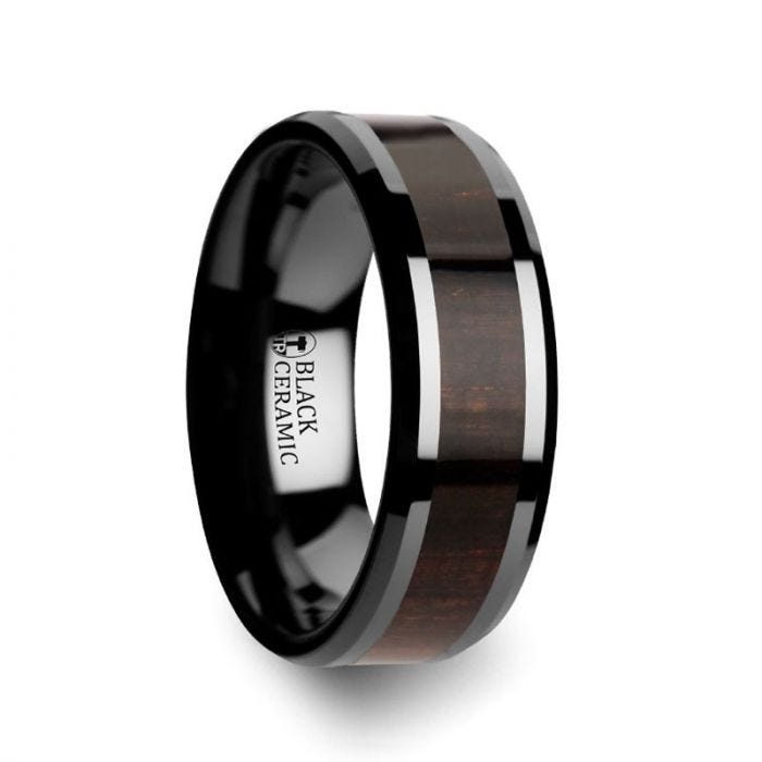 UMBRA Black Ebony Wood Inlaid Black Ceramic Ring with Beveled Edges - 8mm