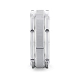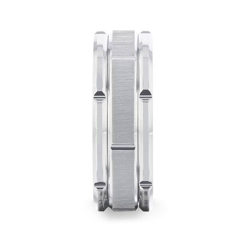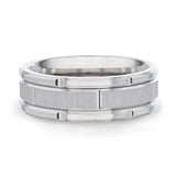 WARRICK Alternating Grooves And Horizontal Etched Finish Titanium Men's Wedding Band with Alternating Grooved Beveled Polished Edges - 8mm