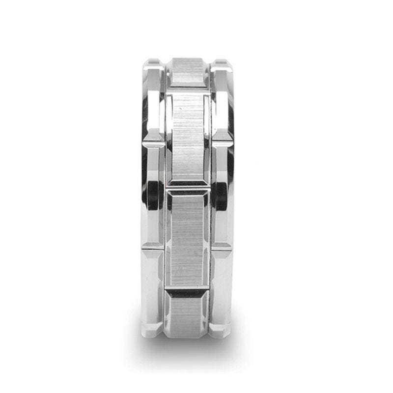 WARWICK Beveled Tungsten Carbide Wedding Band with Brush Finished Center and Alternating Grooves - 8mm