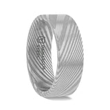 XANDER Grey Flat Brushed Damascus Steel Men Wedding Band with Vivid Etched Design - 6mm & 8mm