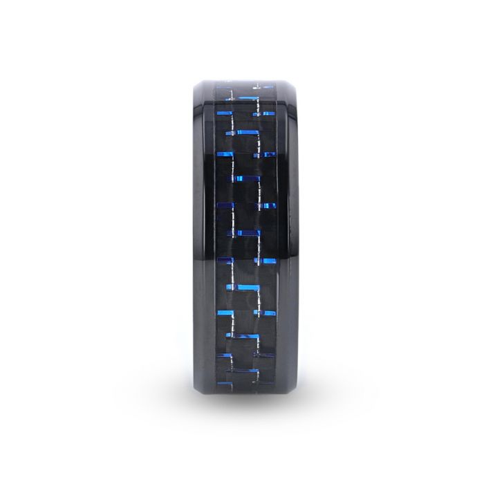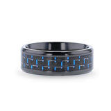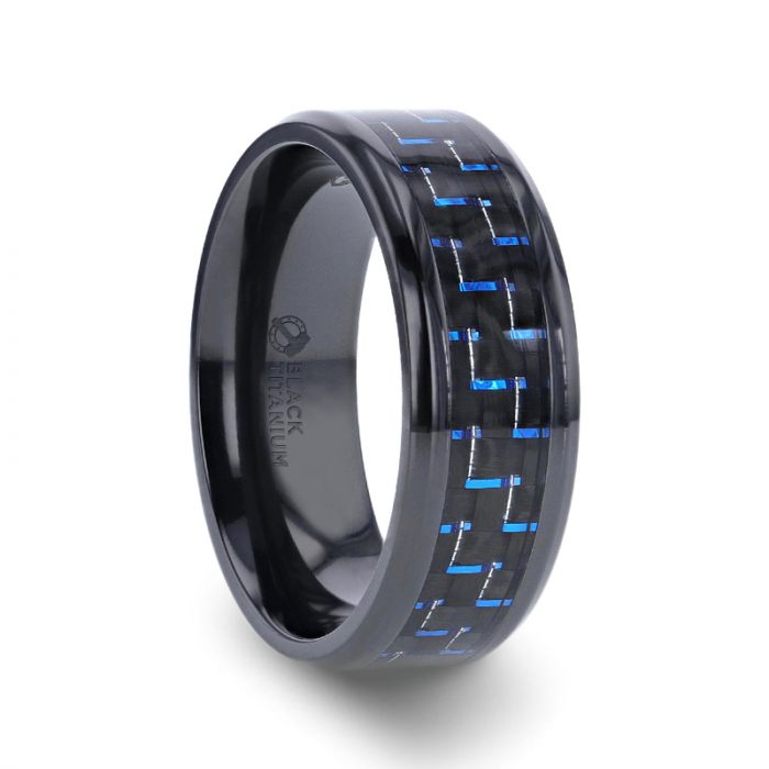 ZAYDEN Black Titanium Ring with Blue & Black Carbon Fiber Inlay and Bevels - 8mm