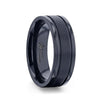 WINDSOR Beveled Black Tungsten Band with Alternating Grooves