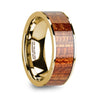 YANNI Polished 14k YG Men Flat Wedding Band with Mahogany Wood