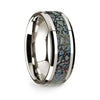 14k WG Polished Beveled Edges Ring with Blue Dinosaur Inlay