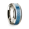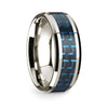 14k WG Polished Beveled Edges Ring with Blue Carbon Fiber Inlay