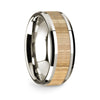14k WG Polished Beveled Edges Ring with Ash Wood Inlay