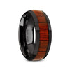 MARCUS Olive Wood Inlaid Black Ceramic Ring with Bevels