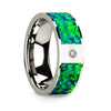 Men Polished 14k WG Flat Ring with Black & Green Carbon Fiber Inlay