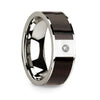 Men Polished 14k WG Band with Mahogany Wood Inlay & Diamond