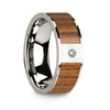 Men Polished 14k WG & Teak Wood Inlaid Band with Diamond
