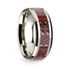 14k WG Polished Beveled Edges Ring with Red Dinosaur Bone