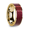 PHOIBOS Men 14k YG Flat Wedding Ring with Red Wood Inlay