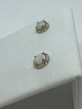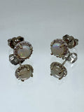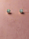 14 karat white-gold cradles these glowing Australian Opals, surrounded in a halo of 0.13 carats of Diamonds.