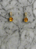 Set in 14 karat yellow-gold, rich Citrine glows bright in these dainty dangle earrings accented by a total of 0.07 carats of natural Diamonds.