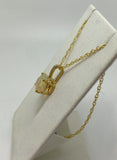 Set in 14 karat yellow-gold & accented by  0.01 total carats of Diamonds, this stunning pendant comes with a 14 karat yellow-gold rope chain in our standard 18" length.