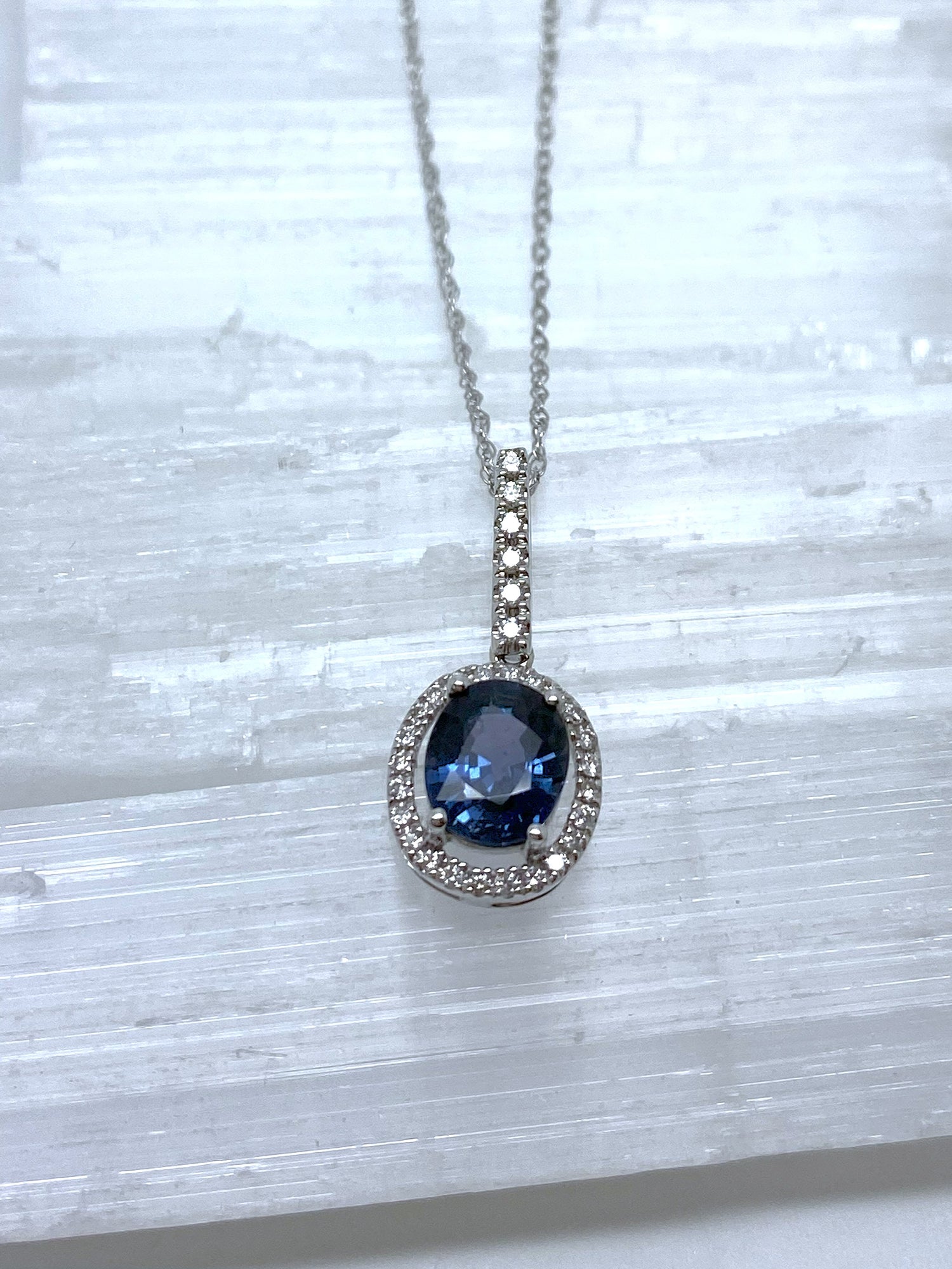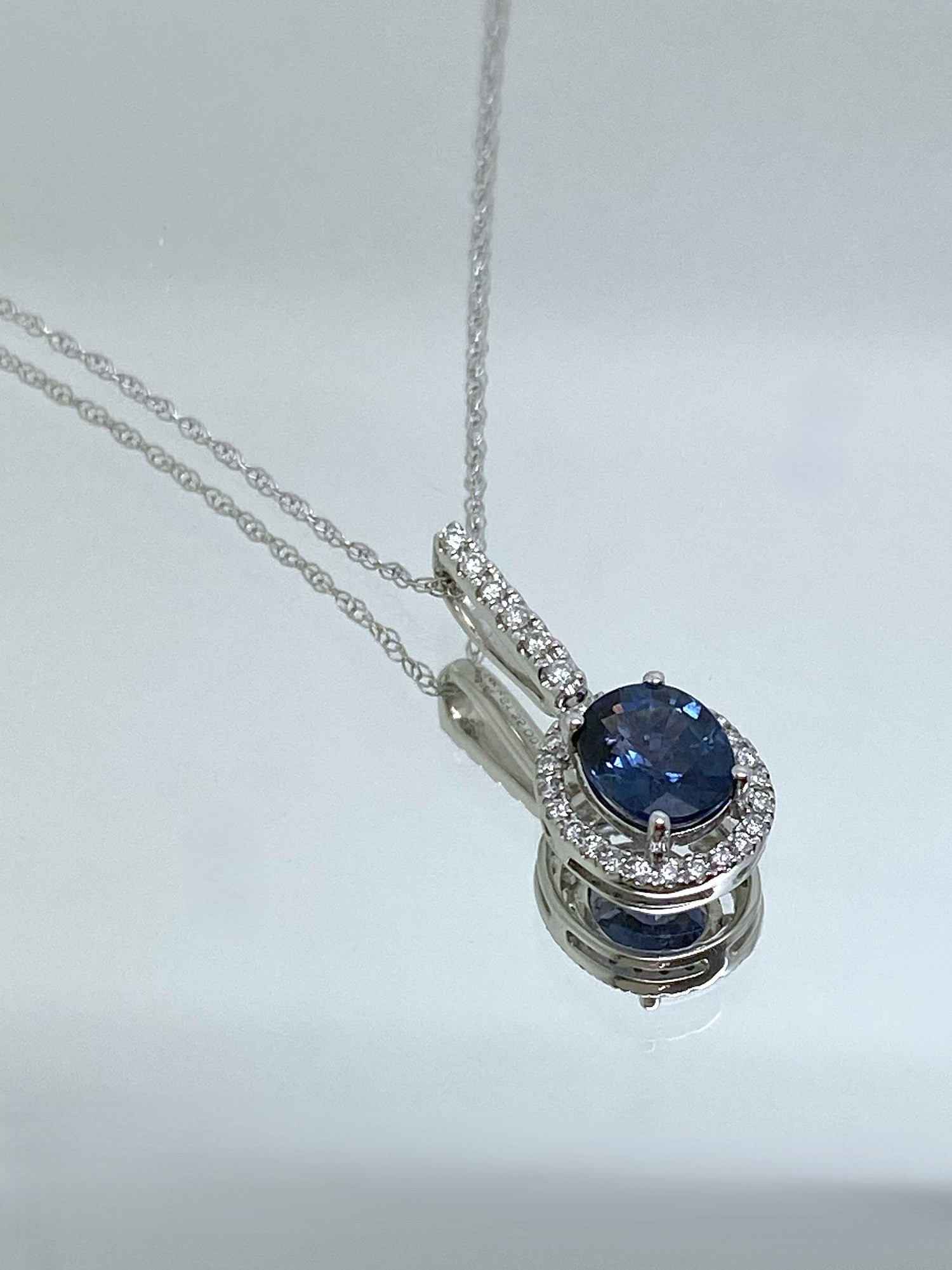 14kt Oval Blue Sapphire and Diamond Accent Pendant