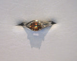 Set in 14 karat white-gold and nestled between two glittering Diamonds totaling 0.05 carats, this ring makes a beautiful addition to a ring stack or as an every day staple!