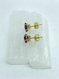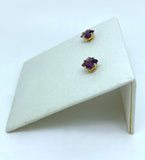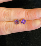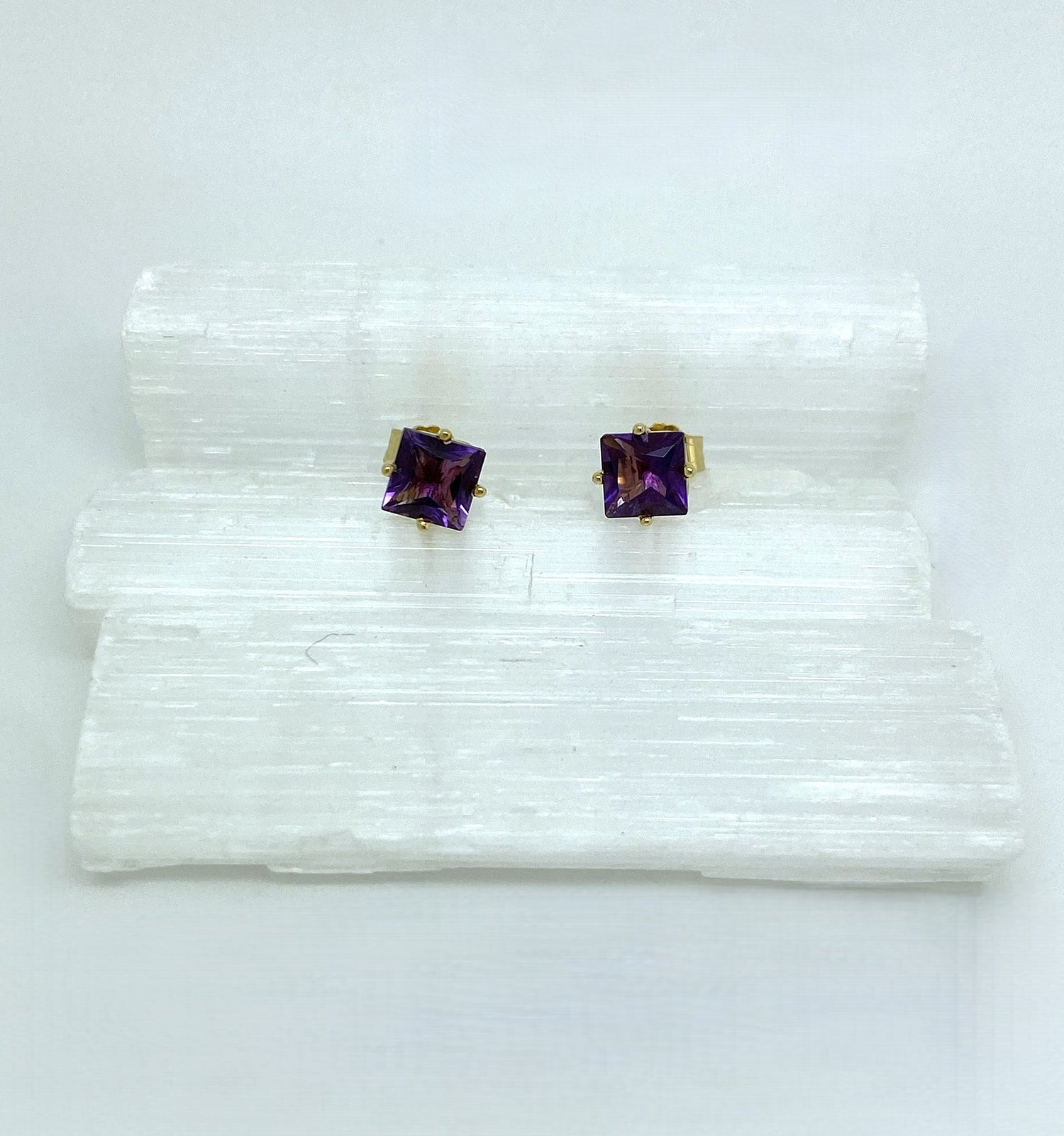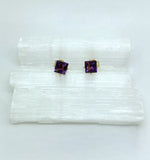 Cute as a button, these 1.5 total carat weight princess cut Amethyst studs are set in 14 karat yellow gold.