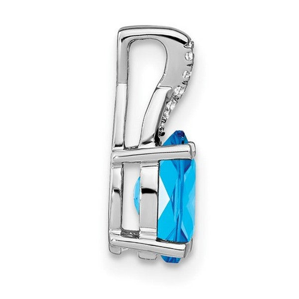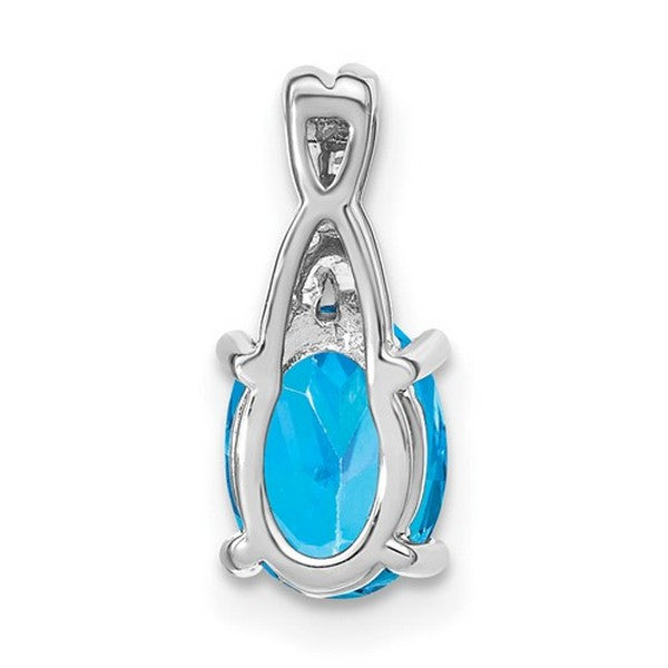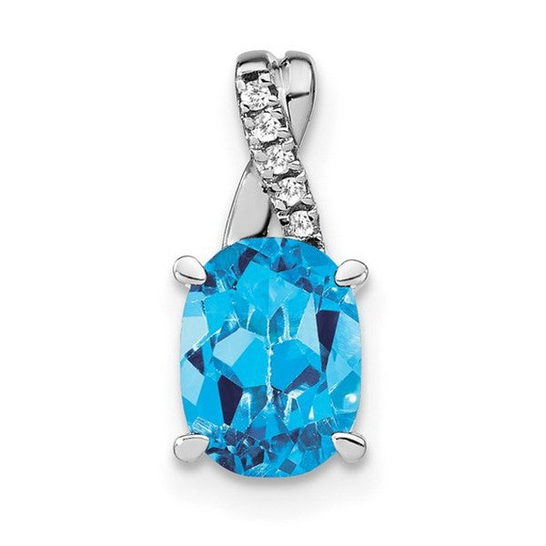 14k White Gold Oval Blue Topaz and Diamond Pendant w/ 18 chain