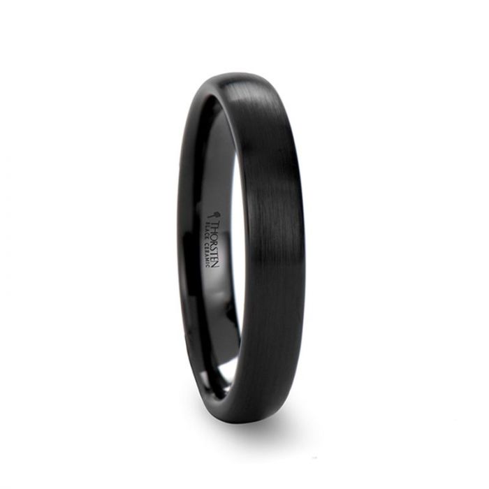 ATTOR Domed Brush Finished Black Ceramic Wedding Band - 2mm - 12mm